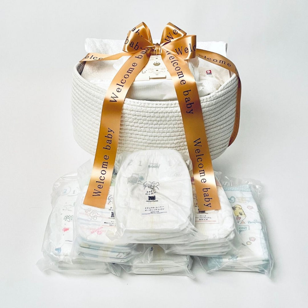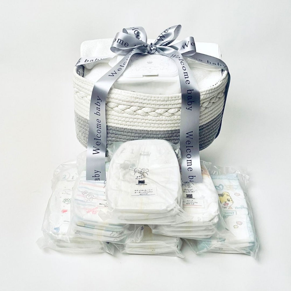 商品内容 | おむつストッカー×1、パンパース さらさらケアテープ、パンパース はじめての肌へのいちばん、ムーニー エアフィット テープ、ナチュラル ムーニー オーガニックコットン おむつ テープ、メリーズ エアスルー、メリーズ ファーストプレミアム各4枚(合計24枚入り)おむつのサイズは、S/Mからお選びください。、bitattoビタット洗って使いまわせるおしりふきのフタ(pappimommi)×1個、弱酸性おしりふき80枚入り×1、今治製 フェイスタオル ホワイト(340×100mm)、手提げ袋×1枚 ■おまけ:天使のリボン (welcome baby)(幅40mm×約2.5m) バスケットがリニューアルします。内側にあったロゴが外側に!バスケットトップのつなぎ目は、ロゴの内側に入ります。尚、商品の切り替えは、なくなり次第変更させていただきますことご了承ください。 |