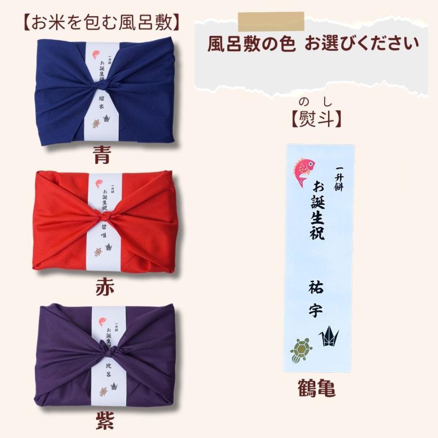 2)お米の包みは小風呂敷包み(サイズ:48×48cm 材質:ポリエステル100%)
