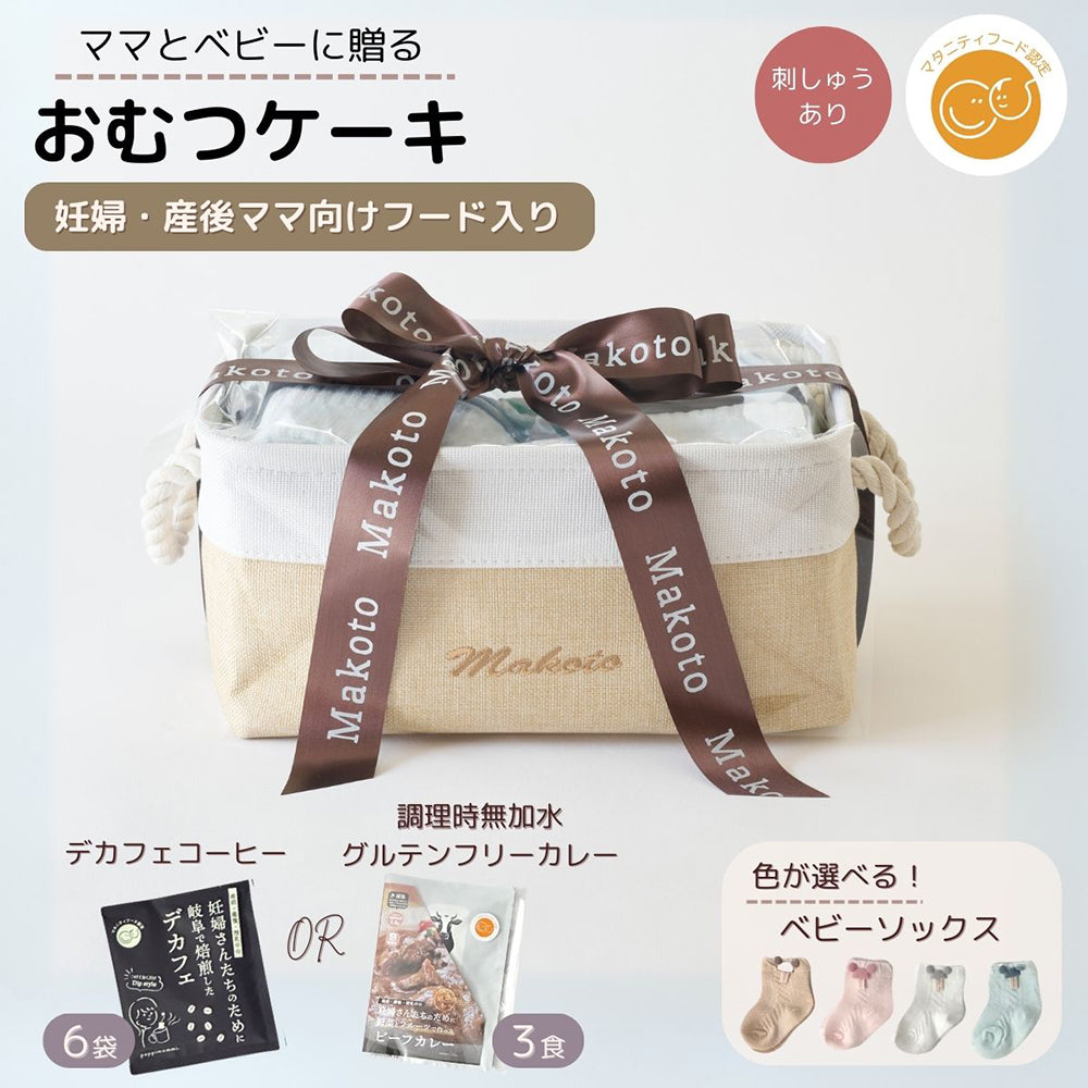 おむつケーキ出産祝い 男の子 女の子 ママ カレー or デカフェ シンプルバスケット